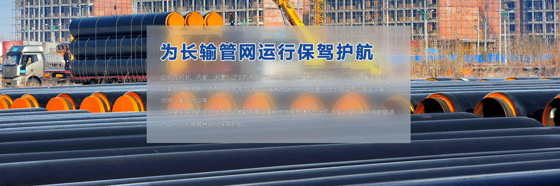 公司在河北、內(nèi)蒙、天津、遼寧均有生產(chǎn)基地,總占地面積500余畝。公司產(chǎn)品覆蓋中國以及蒙古、俄羅斯、中東、南非等20 多個國家和地區(qū),產(chǎn)品主要應(yīng)用于高溫蒸汽輸送、集中供熱、集中供冷等。 公司依靠先進(jìn)的生產(chǎn)技術(shù)、完善的配套設(shè)備和供貨服務(wù)體系,為廣大客戶提供高標(biāo)準(zhǔn)的管道產(chǎn)品,為長輸管網(wǎng)運行保駕護(hù)航。
